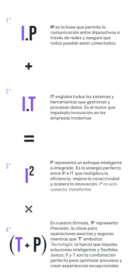 Más que una simple combinación de tecnologías, I² representa un enfoque inteligente e integrado. Es la sinergia perfecta entre IP e IT que multiplica la eficiencia, mejora la conectividad y acelera la innovación. I² no solo conecta, transforma